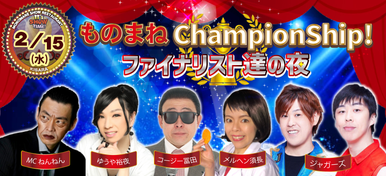 2023年2月15日(水) Posted on 2023年1月6日2023年12月11日 by kisara 【ものまねChampionShip!ファイナリスト達の夜】 コージー冨田メルヘン須長ジャガーズゆうや裕夜MCねんねん
